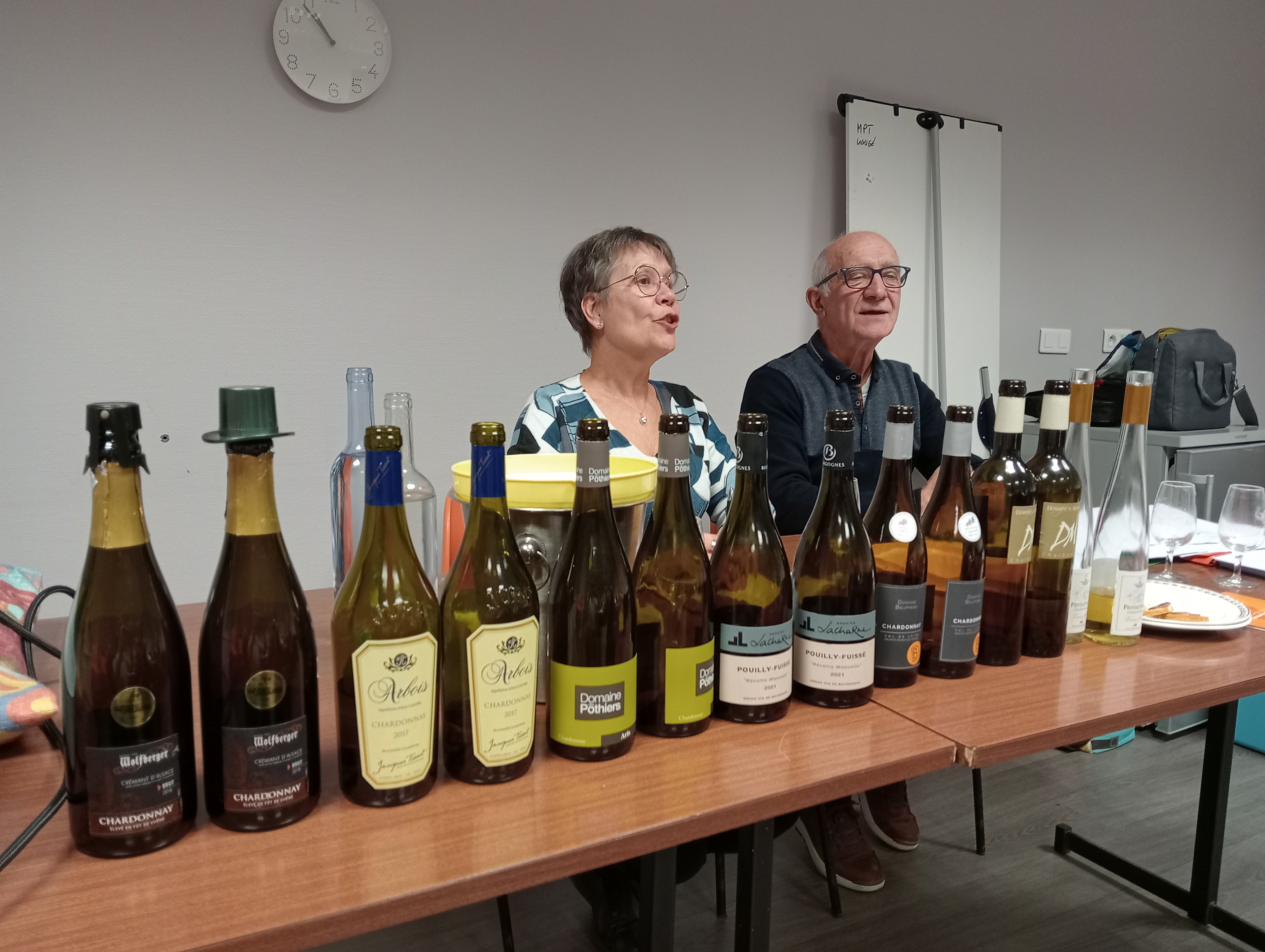 La séance de décembre avait pour thème "Les chardonnays de France", réalisée par Catherine et Christian qui nous ont fait connaître l'étendue des vins de ce cépage entre secs et moelleux de l'Alsace à la Bourgogne, la Loire et jusqu'aux Corbières.