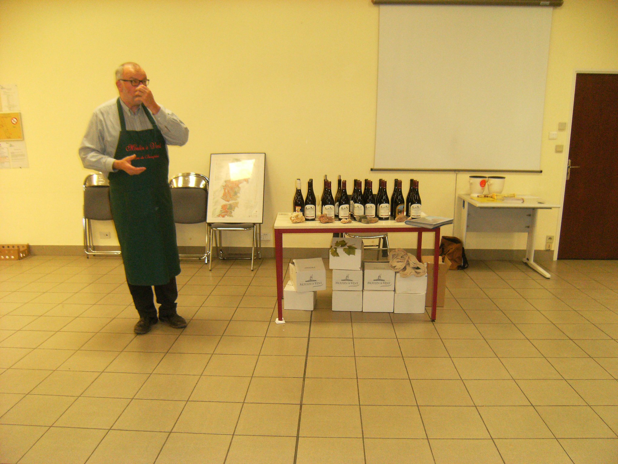 La séance de mars des Compagnons a vu l'accueil du viticulteur Denis Chastel-Sauzet du vignoble du Beaujolais "Moulin à vent" qui nous a présenté ses vins des appellations Moulin à vent, Juliénas, Chénas, Chiroubles, Beaujolais